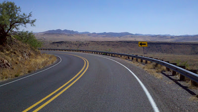 And that was it for the highlight in the afternoon. It was all business after that. We headed straight into the wind for a good 15 miles and it was gusting right in our faces. It was an all out battle of will and determination. It is extremely defeating to be putting out such an effort to be pushed straight back. It was so bad that on the downhills you still had to pedal because the wind wouldn't allow you to coast. We rode right up to the base of the hills. When we got there you could see the road winding up the side of the hills. All you can do is down shift and keep going.